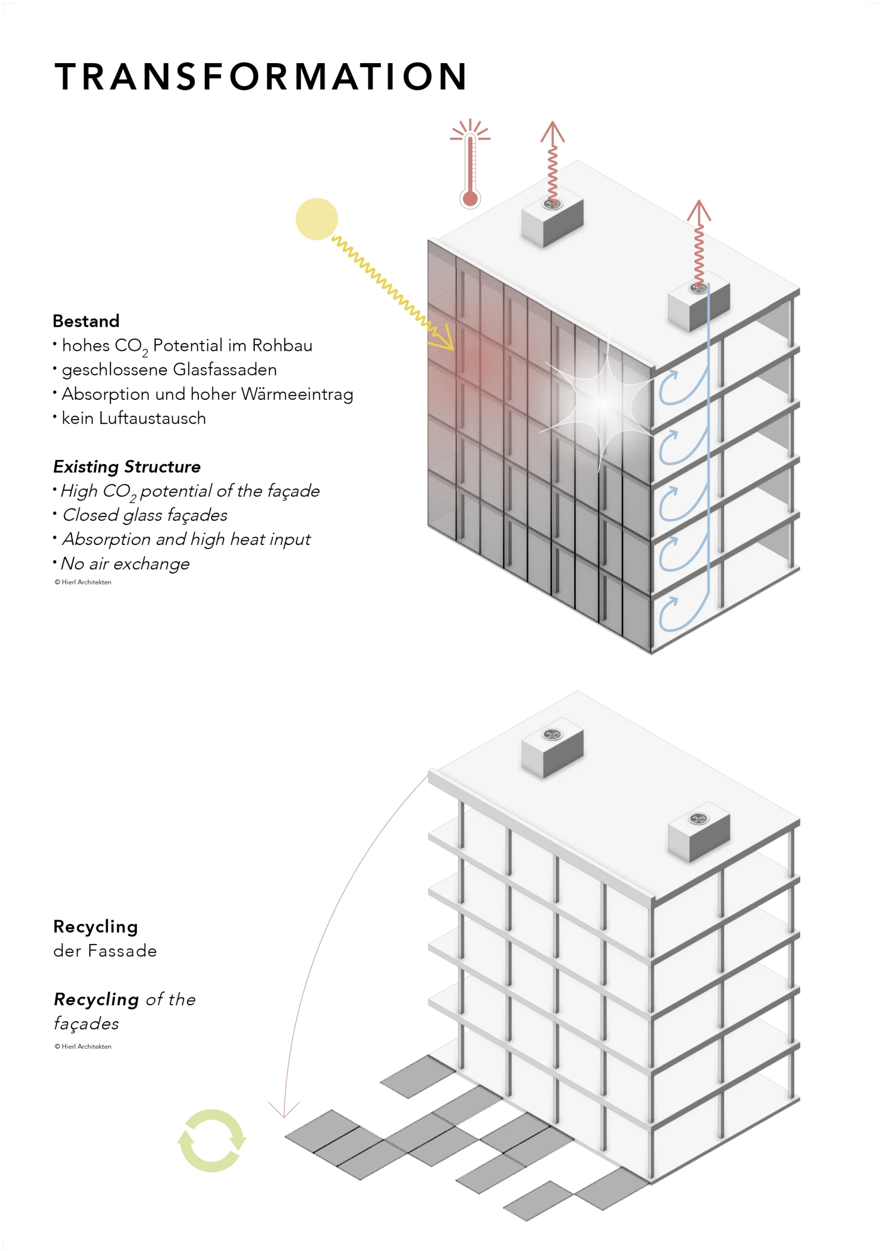 Das ist kein technisches-organisatorisches Problem, sondern erklärt sich aus der unterschiedlichen Bewertung dieser beiden Immobilienarten. Da haben auch wir als Architekten dazugelernt: Denn als Wohnungsbau ist die ursprüngliche Büroimmobilie in den Büchern, in den Bilanzen der Eigentümer respektive Fondsgesellschaften dann nur noch die Hälfte wert. Selbst wenn vorher Büroleerstand herrschte. Das ist eine der großen Hürden. Was machen wir mit den Defiziten? Genau diese Frage stellt sich hier.